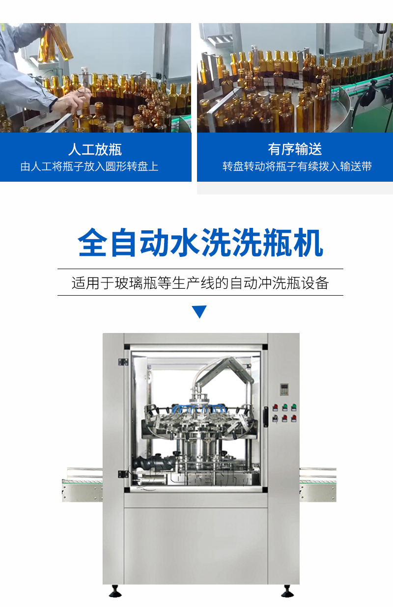 全自動洗瓶機是一種適用于玻璃瓶等生產(chǎn)線的自動沖洗瓶設(shè)備。該機設(shè)計合理,結(jié)構(gòu)嚴(yán)謹,封閉式生產(chǎn)確保生產(chǎn)過程中不受污染。在消化吸收意大利先進技術(shù)的基礎(chǔ)上,精心研制而成。