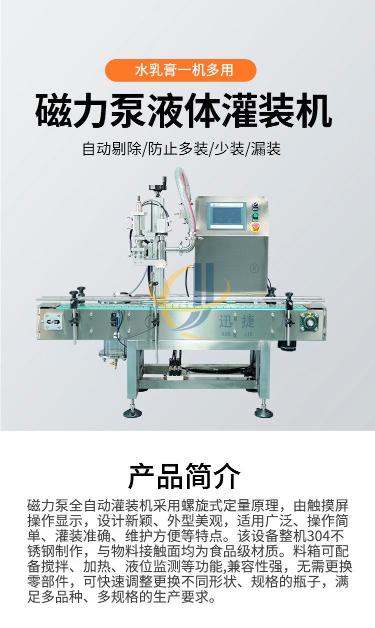 磁力泵全自動(dòng)灌裝機(jī)采用螺旋式定量原理,由觸摸屏操作顯示,設(shè)計(jì)新穎、外型美觀,適用廣泛、操作簡