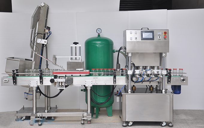 全自動(dòng)直線式真空旋蓋機(jī)采用世界知名工廠電器和氣動(dòng)元件,故障率低,性能穩(wěn)定可靠,使用壽命長(zhǎng),主要用于玻璃瓶馬口鐵蓋的灌裝。