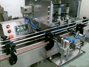 本機與物料接觸均為不銹鋼制作,完全符合GMP標準??焖倩罱舆B接,拆洗方便,灌裝量、灌裝速度均可調節(jié),更 換不同規(guī)格形狀的瓶子,不需更換零件,調整容易。另灌裝頭設有防滴漏裝置,灌裝無拉絲、滴漏;有瓶灌裝、無瓶不灌裝;設有計數功能,能準確顯示當前產量、 前班產量;并備有自動加料控制接口,實現對加料的自動控制。各動作平穩(wěn)、準確無誤,是目前較為理想的機電氣一體化產品。(該設備需要配備輔助設備:真空泵,真空儲氣罐)