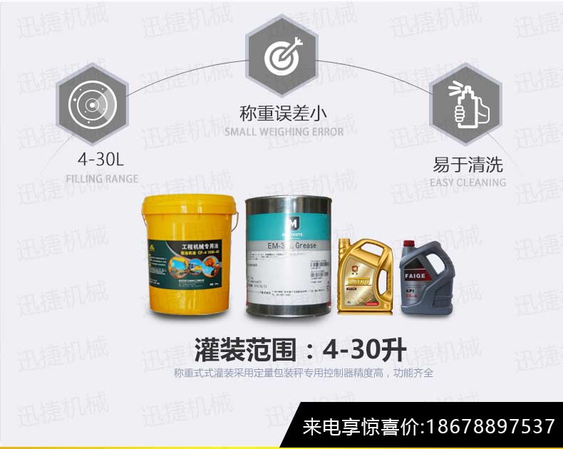 機油灌裝機適用于對4kg-25kg汽車用品類產(chǎn)品:潤滑油、防凍液、車用尿素等液體灌裝。自動完成計數(shù)進瓶、計重量灌裝、輸送出瓶等一系列操作。 特別適用于潤滑油、水劑、食用油的定量灌裝,是食品,醫(yī)藥,化妝品以及精細化工等行業(yè)的理想灌裝機。本機采用可編程控制器(PLC)、高速工控組態(tài)軟件進行實時監(jiān)控的控制,使用調(diào)節(jié)方便。整機按GMP標(biāo)準(zhǔn)要求制作,各管路連接采用快裝方式,拆卸清洗方便,與物料接觸部位及外露部位均采用不銹鋼制造。整機安全、環(huán)保、安全、美觀、能適應(yīng)各種不同環(huán)境工作。